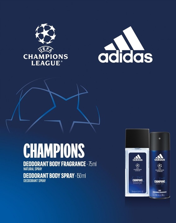 Adidas UEFA Champions League Zestaw Dezodorant Atomizer 75ML + Antyperspirant Spray 150ML