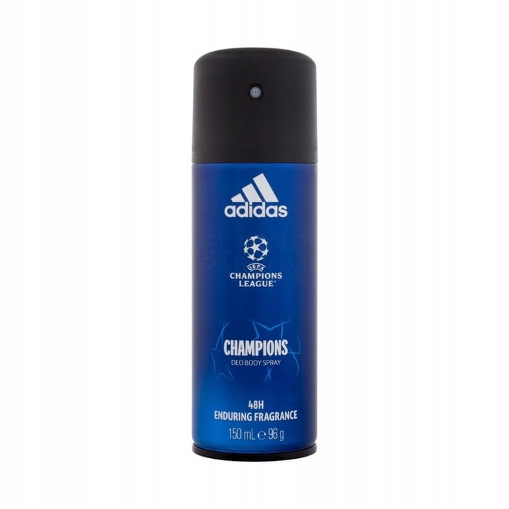 - Adidas UEFA Champions League Antyperspirant Spray 150ML - Zapach przywodzący na myśl piłkarską rywalizację i atmosferę elitarnych rozgrywek UEAF Champions League. Kompozycja jest niezwykle świeża, męska i sprzyjająca aktywności. Dodatkowo, Adidas UEFA VIII zapewnia ochronę przeciw nadmiernym potem nawet na 48 godzin. Przypadnie do gustu mężczyznom, którzy są cały czas w ruchu, lubią sport i zaangażowanie w to co robią.