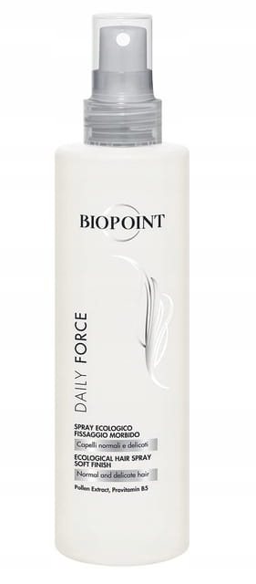Biopoint Lakier do włosów Daily Force jest przeznaczony do każdego rodzaju włosów, dostarczając profesjonalne rezultaty bez pozostawiania lepkich osadów czy nagromadzeń. Jego lekka formuła sprawia, że włosy zachowują naturalny blask i teksturę.