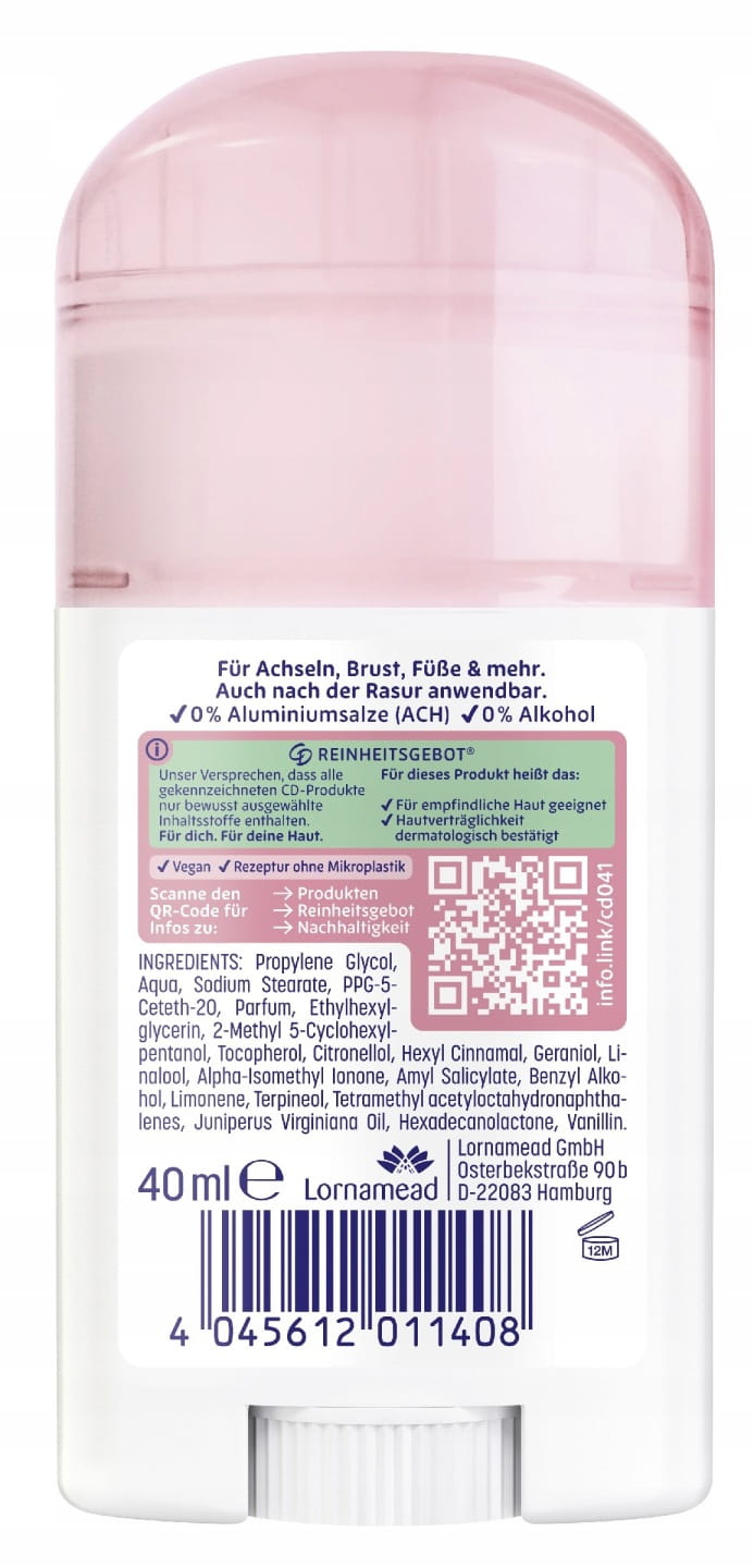 Formuła zapewnia długotrwałe uczucie świeżości, jednocześnie pozostając delikatną dla skóry.