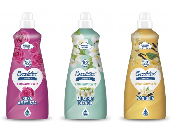 Formuła Coccolatevi, opracowana z myślą o zachowaniu jakości i intensywności barw tkanin, minimalizuje elektryzowanie się materiałów i ułatwia prasowanie.
