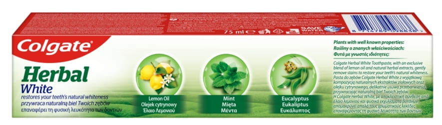 Pasta do zębów Colgate Herbal to produkt, który w swoim składzie posiada ekstrakty z popularnych, naturalnych ziół, takich jak mięta i eukaliptus.