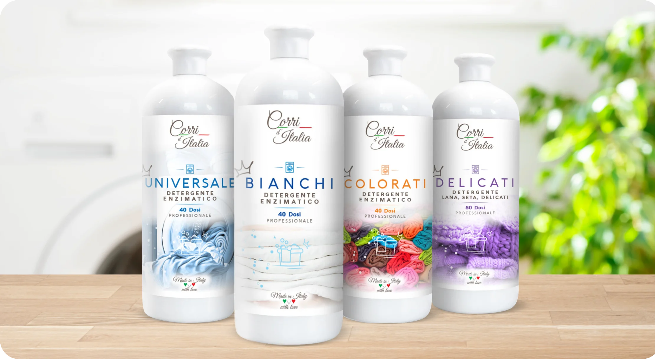 Płyny Corri d’Italia powstały z myślą o kompleksowej pielęgnacji wszystkich rodzajów tkanin. Skoncentrowane formuły oparte na enzymach gwarantują doskonałe efekty przy mniejszym zużyciu detergentu. Każdy element – od starannie opracowanych receptur po eleganckie opakowania – odzwierciedla włoską dbałość o perfekcję.