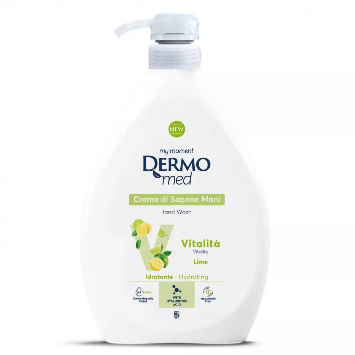 Mydło w płynie Dermomed Vitalità Lime skutecznie oczyszcza skórę dłoni, pozostawiając ją miękką, gładką i przyjemnie pachnącą.