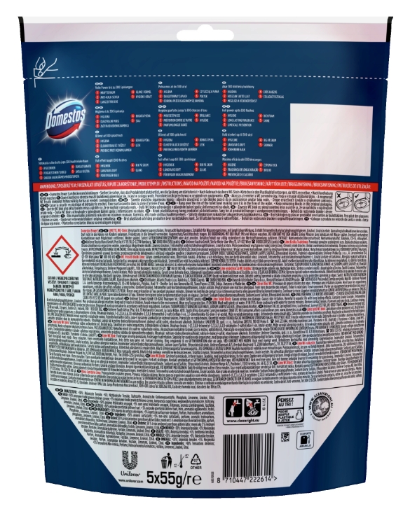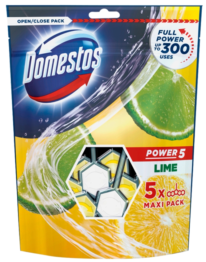 Utrzymanie długotrwałego uczucia świeżości i czystości może zająć kilka sekund. Jak? Sięgnij po innowacyjne kostki toaletowe Domestos Power 5, które traktują wszelki brud i bakterie obfitą, doskonale czyszczącą pianą. Zainstalowanie ich w muszli trwa krótką chwilę, a świetnie uzupełni działanie i utrzyma porządek zaprowadzony przez pozostałe produkty Domestos.