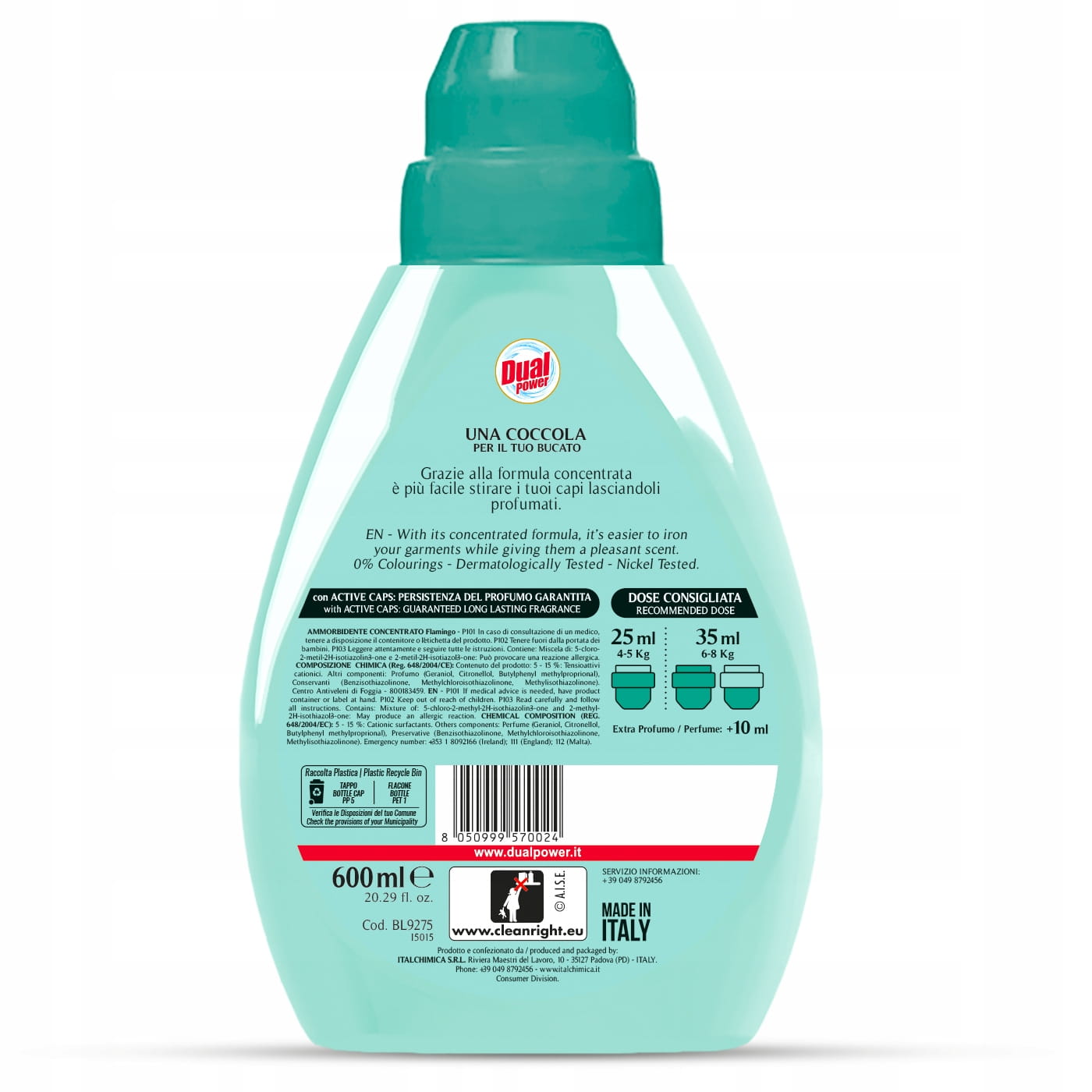 Koncentrat do płukania tkanin Dual Power Relax skutecznie zmiękcza ubrania, nadając im wyjątkową miękkość i długotrwałą świeżość.