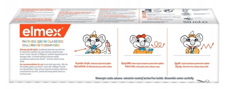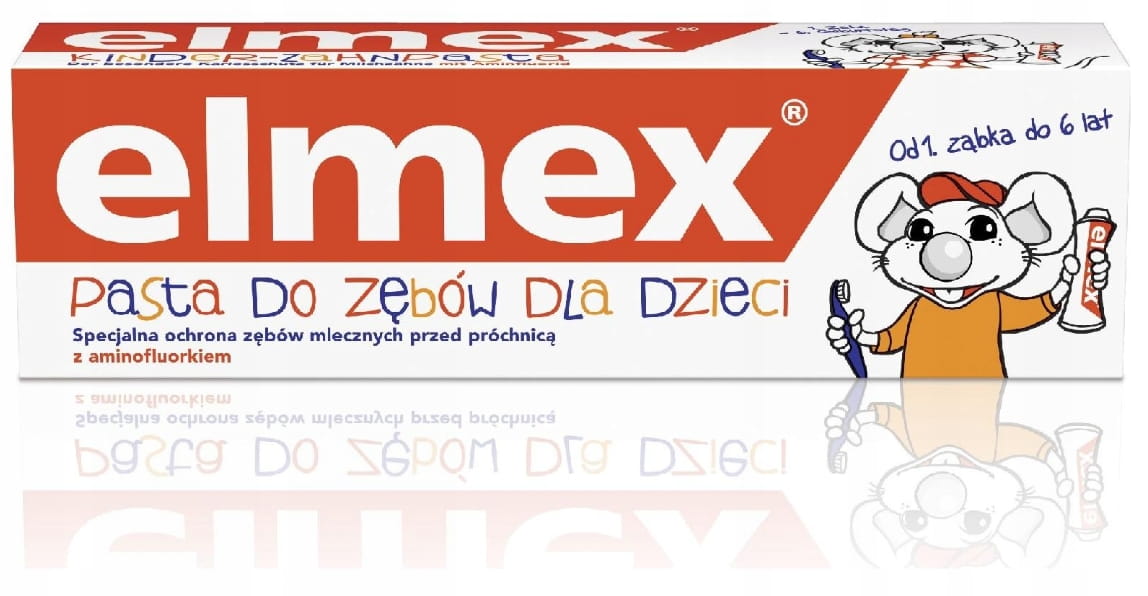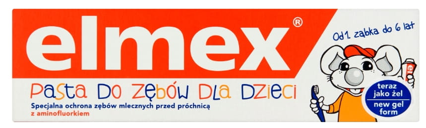 Elmex Pasta do zębów Dla Dzieci 0-6 lat została opracowana specjalnie do oczyszczania i ochrony zębów mlecznych. Może być stosowana od pojawienia się pierwszego ząbka mlecznego aż do pojawienia się pierwszych zębów stałych, czyli najczęściej do momentu rozpoczęcia przez dziecko nauki w szkole podstawowej.