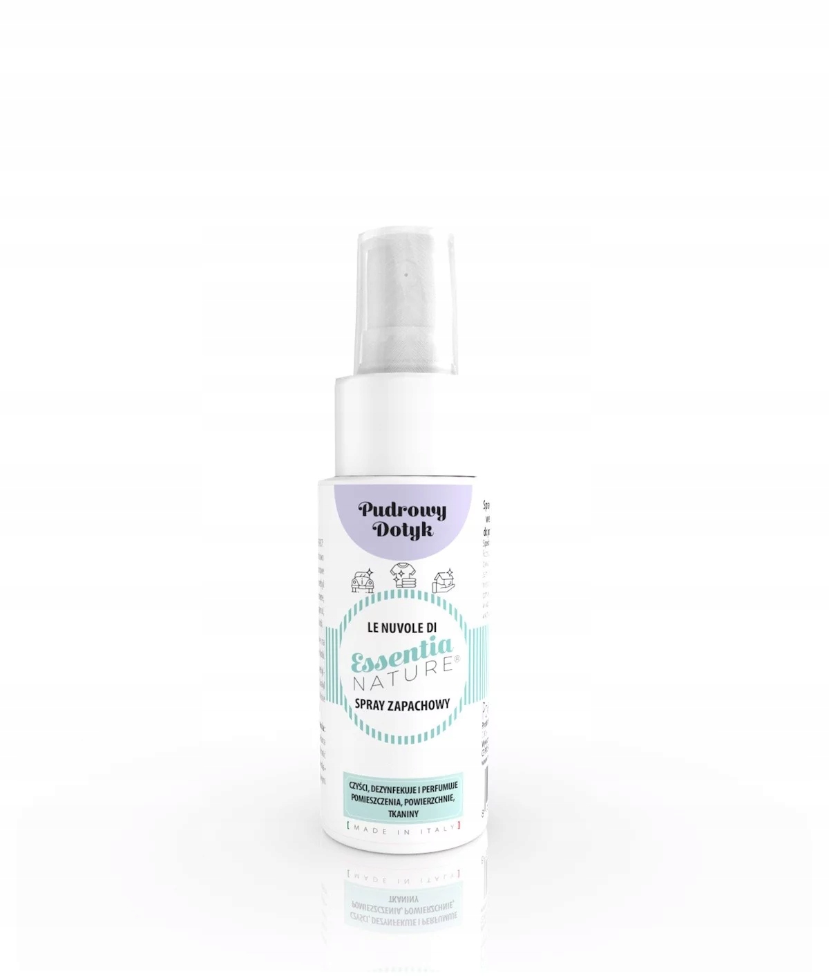 Skoncentrowane, włoskie perfumy do pomieszczeń i tkanin o działaniu odświeżająco-dezynfekującym.