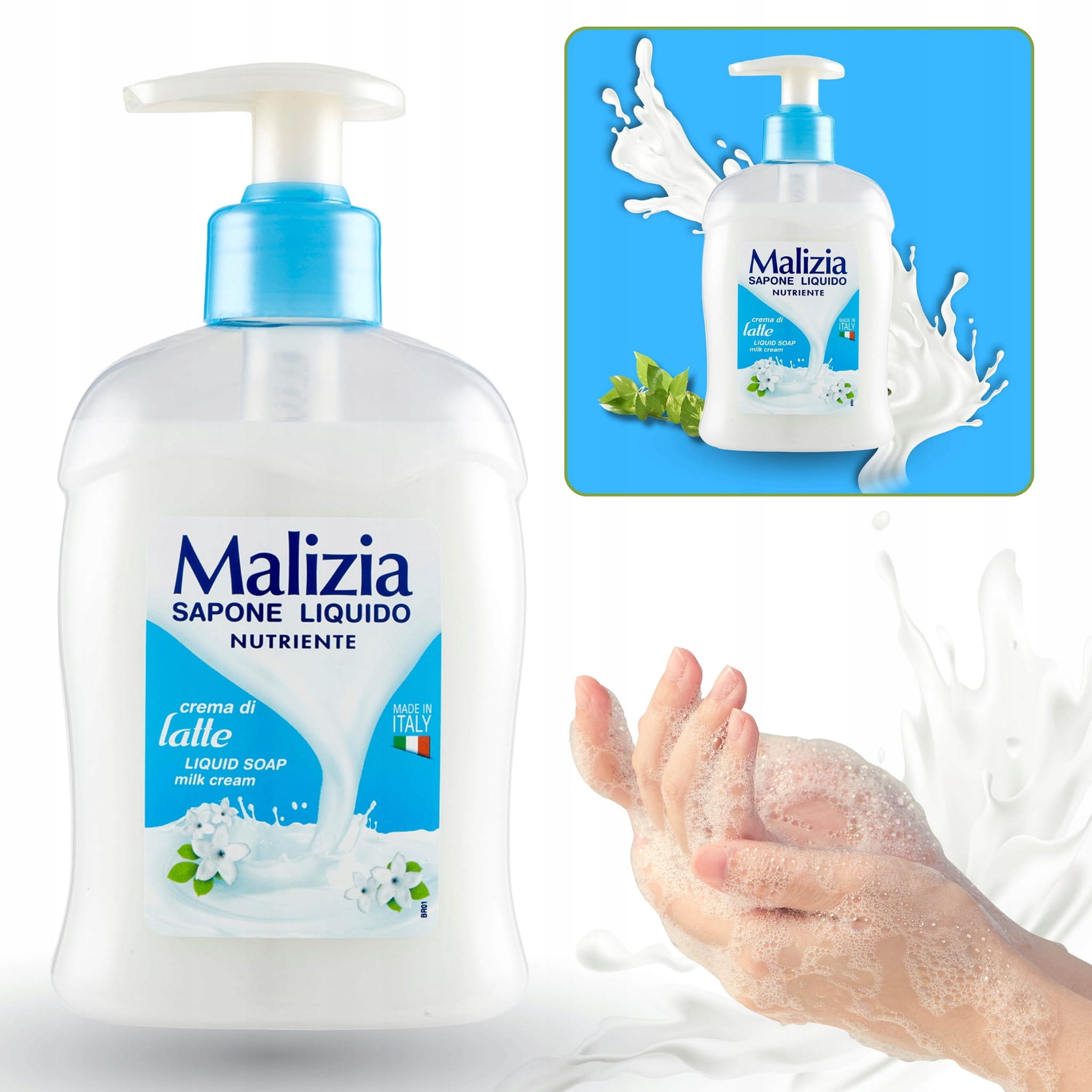 Mydło w płynie Malizia Latte to delikatny produkt przeznaczony do codziennego mycia rąk i ciała.