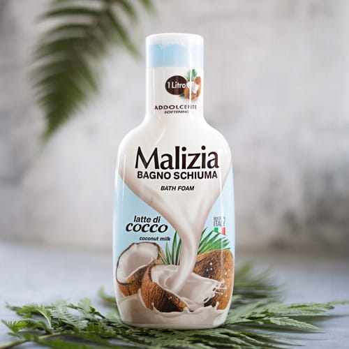 Malizia Latte di Cocco to włoski płyn do kąpieli, który łączy w sobie egzotyczny aromat kokosa z delikatnym działaniem pielęgnacyjnym.