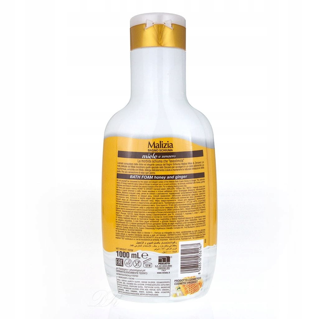 Malizia Miele & Zenzero to kremowy płyn do kąpieli, który łączy słodką aurę miodu z lekko pikantnym akcentem imbiru.