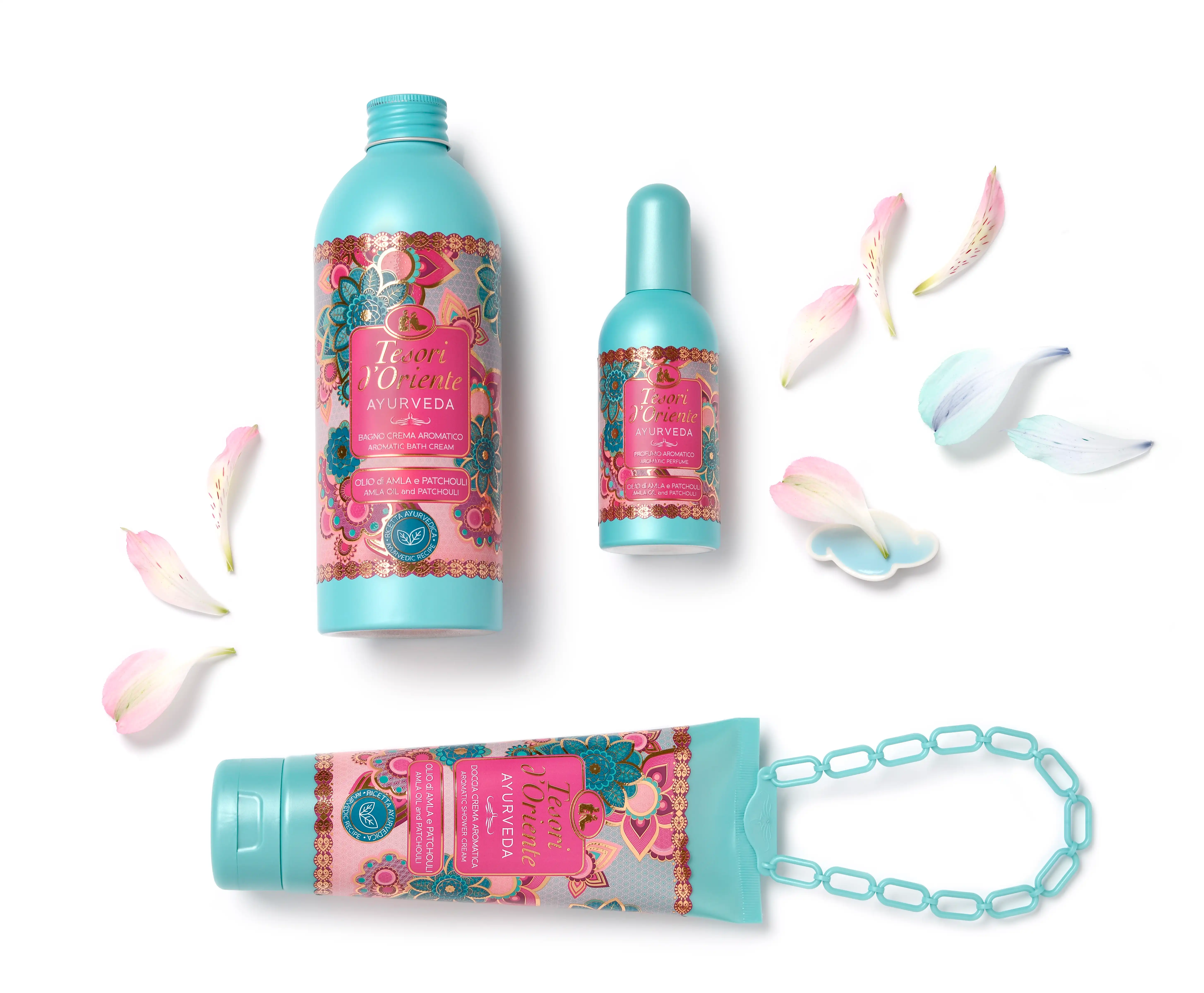 Kompozycja zapachowa linii Tesori d'Oriente Ayurveda jest inspirowana tradycyjnymi ajurwedyjskimi rytuałami, łącząc egzotyczne, orientalne aromaty, które mają właściwości relaksacyjne i regenerujące.