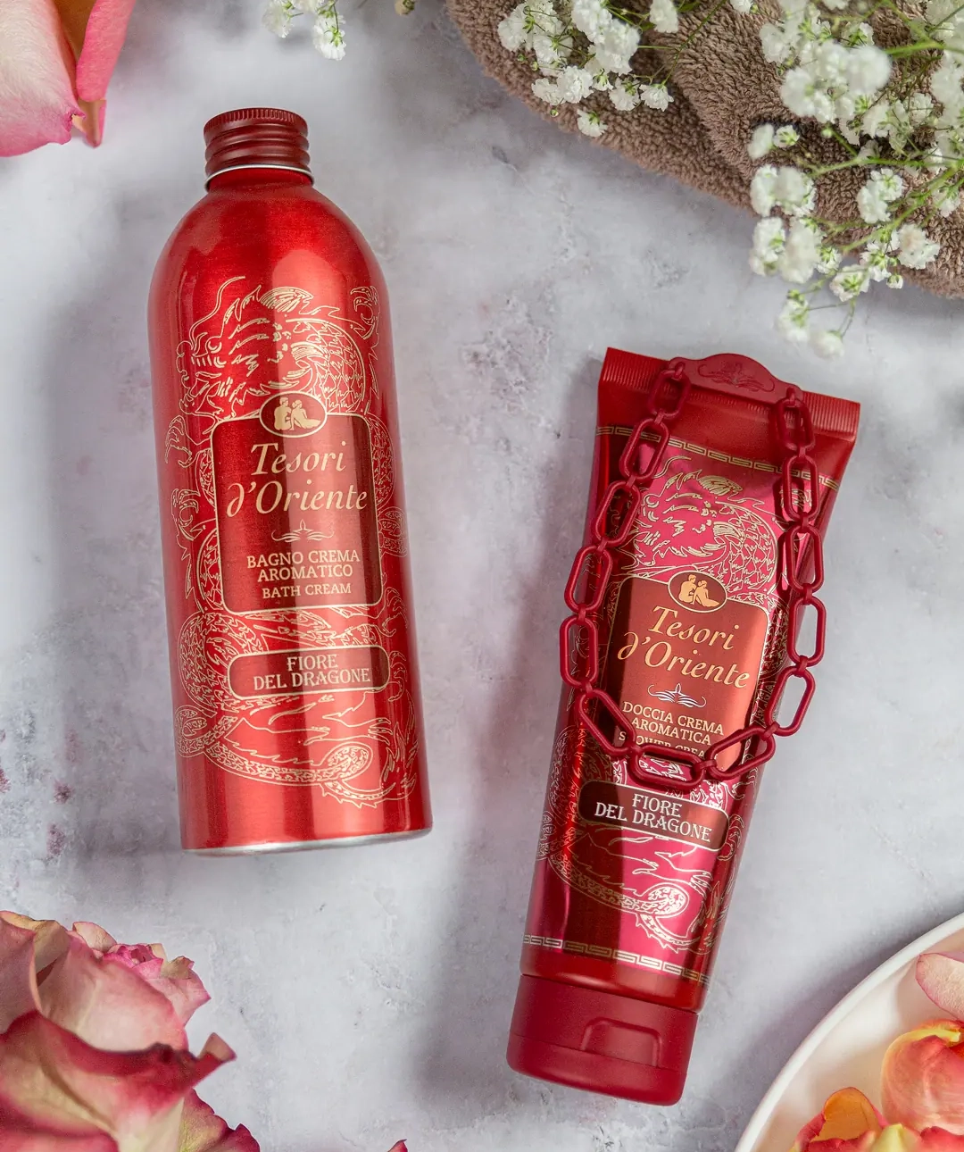 Tesori d’Oriente Fiore del Dragone to pielęgnacyjny płyn do kąpieli, który zapewnia przyjemne oczyszczenie i komfort podczas codziennego rytuału pielęgnacyjnego.