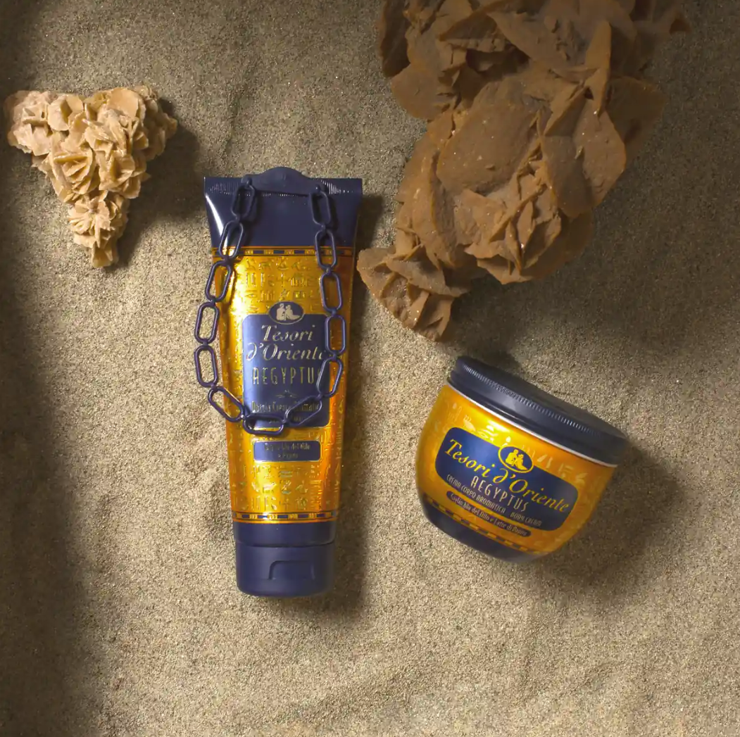 Kompozycja zapachowa linii Aegyptus od Tesori d'Oriente jest inspirowana starożytnym Egiptem i jego bogatą, tajemniczą kulturą. Zapach w tej serii łączy w sobie ciepłe, orientalne nuty, które mają oddać ducha tej cywilizacji oraz jej związki z religią, rytuałami i luksusem.