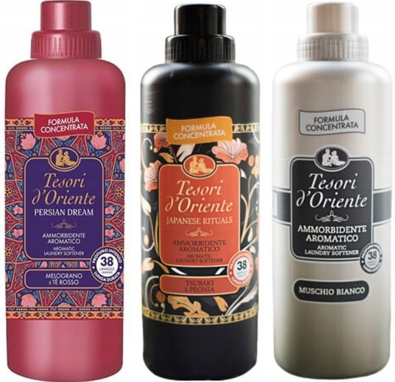 Koncentraty do płukania Tesori d'Oriente znane są z doskonałych zapachów i właściwości zmiękczających. Sprawiają, że ubrania pięknie pachną, są przyjemne w dotyku i łatwe w prasowaniu. Jest to możliwe dzięki zastosowaniu wysokiej jakości składników i aromatów.