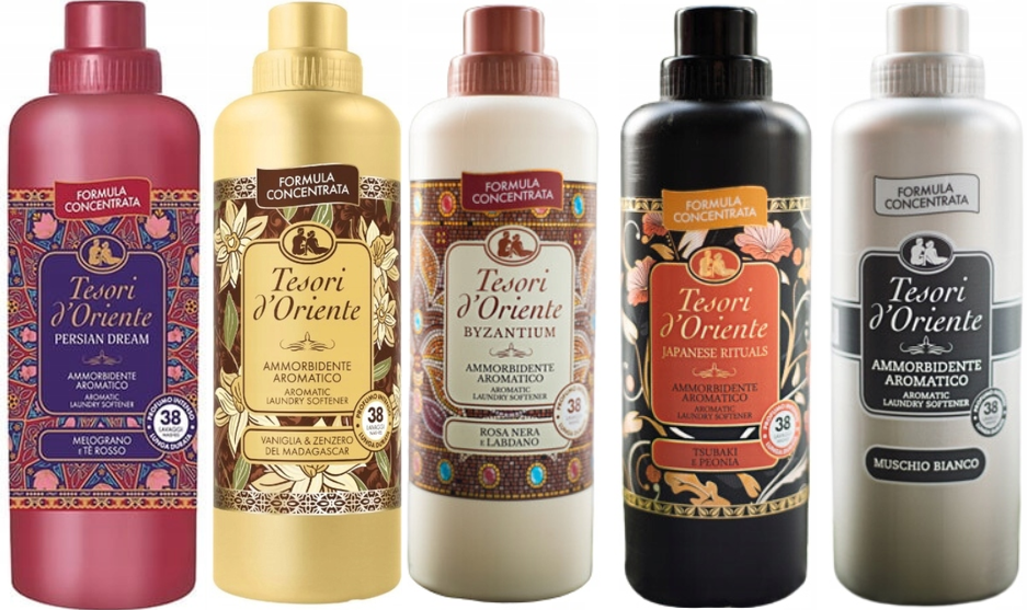 Koncentraty do płukania Tesori d'Oriente znane są z doskonałych zapachów i właściwości zmiękczających. Sprawiają, że ubrania pięknie pachną, są przyjemne w dotyku i łatwe w prasowaniu. Jest to możliwe dzięki zastosowaniu wysokiej jakości składników i aromatów.