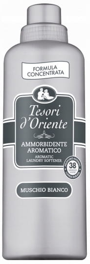 Płyn do płukania tkanin Tesori d'Oriente Muschio Bianco to zanurzenie w bursztynowy i harmonijny blask wysublimowanego zapachu białego piżma. Pieści skórę, pozostawiając na niej długotrwały zmysłowy i kuszący zapach.