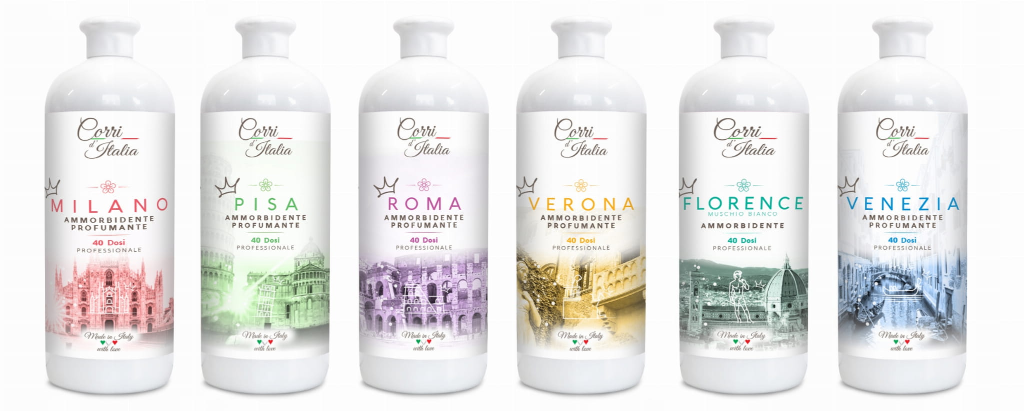 Koncentrat do płukania tkanin Verona marki Corri d’Italia zapewnia wyjątkowy zapach, który podkreśla świeżość ubrań i tekstyliów, sprawiając, że stają się one miękkie i łatwe do prasowania. Przenieś się do romantycznej Verony z luksusowym zapachem od Corri d'Italia.