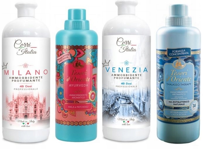 Koncentrat do płukania tkanin Venezia marki Corri d’Italia zapewnia wyjątkowy zapach, który podkreśla świeżość ubrań i tekstyliów, sprawiając, że stają się one miękkie i łatwe do prasowania. Przenieś się na włoskie wybrzeże z luksusowym zapachem Venezia.
