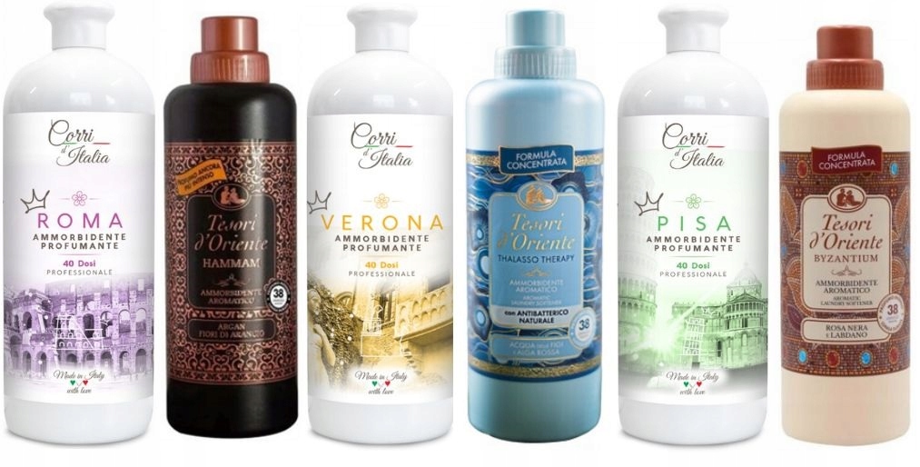 Koncentrat do płukania tkanin Verona marki Corri d’Italia zapewnia wyjątkowy zapach, który podkreśla świeżość ubrań i tekstyliów, sprawiając, że stają się one miękkie i łatwe do prasowania. Przenieś się do romantycznej Verony z luksusowym zapachem od Corri d'Italia.