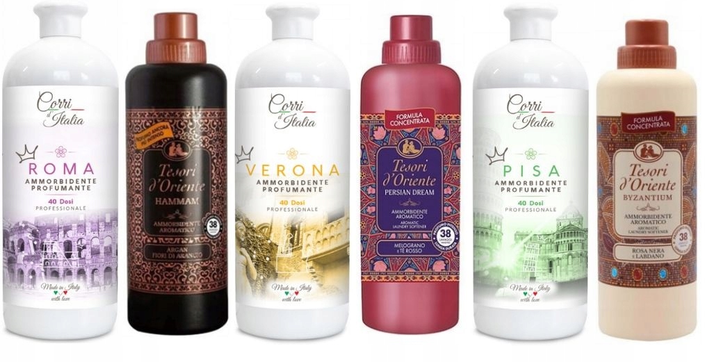 Koncentrat do płukania tkanin Verona marki Corri d’Italia zapewnia wyjątkowy zapach, który podkreśla świeżość ubrań i tekstyliów, sprawiając, że stają się one miękkie i łatwe do prasowania. Przenieś się do romantycznej Verony z luksusowym zapachem od Corri d'Italia.