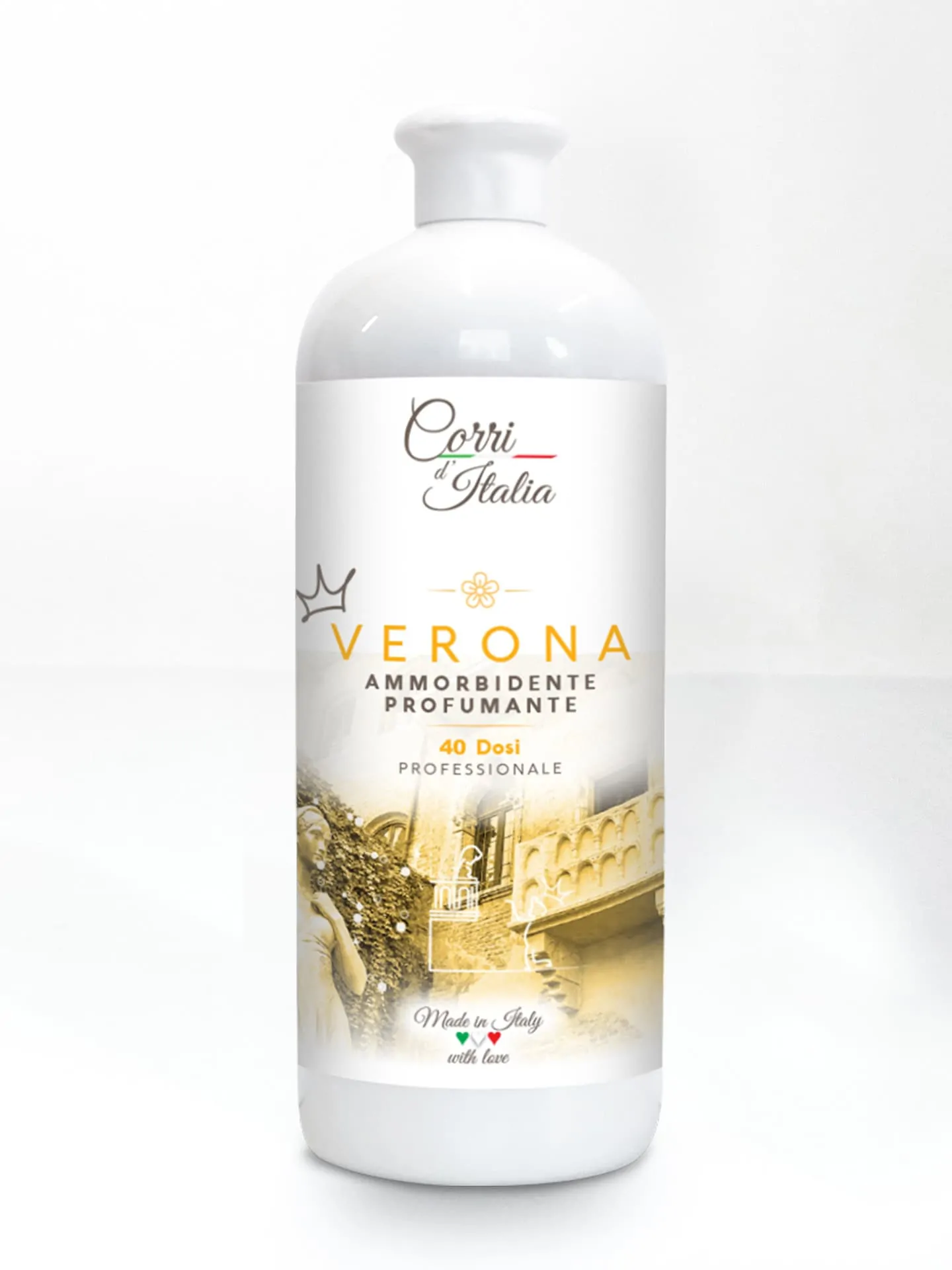 Koncentrat do płukania tkanin Verona marki Corri d’Italia zapewnia wyjątkowy zapach, który podkreśla świeżość ubrań i tekstyliów, sprawiając, że stają się one miękkie i łatwe do prasowania. Przenieś się do romantycznej Verony z luksusowym zapachem od Corri d'Italia.