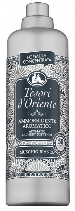 Płyn do płukania tkanin Tesori d'Oriente Muschio Bianco to zanurzenie w bursztynowy i harmonijny blask wysublimowanego zapachu białego piżma. Pieści skórę, pozostawiając na niej długotrwały zmysłowy i kuszący zapach.